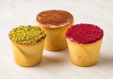 Découvrez notre Tiramisu artisanal, sublimé par notre crème signature maison, onctueuse et légère, inspirée de la recette de grand-mère.