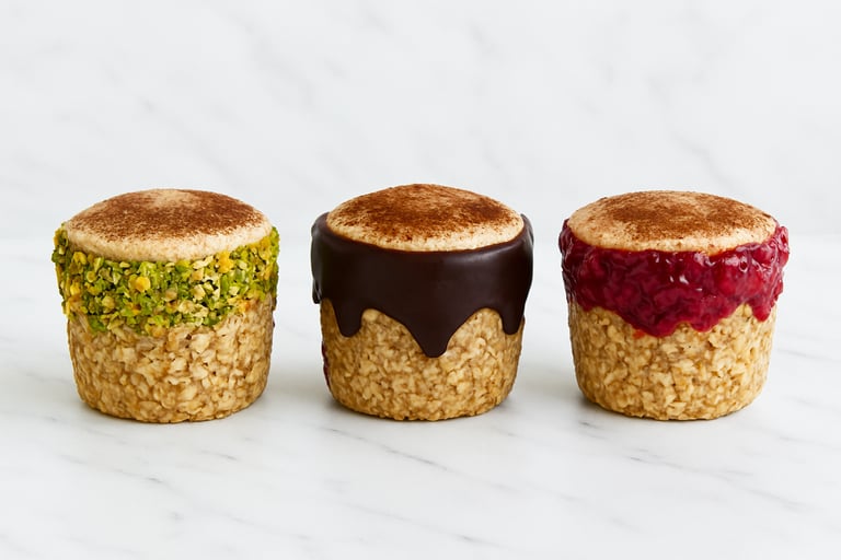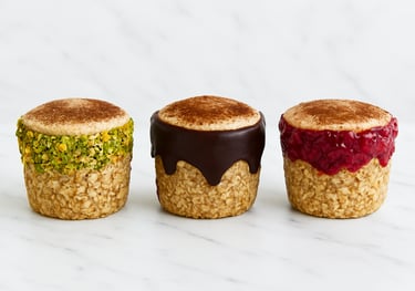 Le tiramimousse avoine – Notre crème onctueuse sur pâte sablée gourmande, en saveurs Classique, Pistache, Framboise ou Spéculoos, en portion individuelle (~200 g).