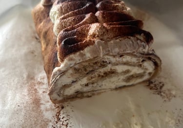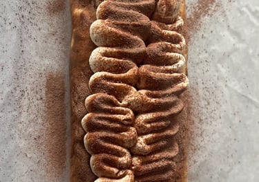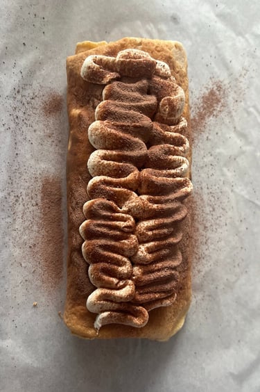 Une crème tiramisu au café, légère comme un nuage, délicatement enroulée dans trois crêpes fines pour créer un roulé fondant, aérien et intensément gourmand. Une texture mousseuse, un parfum café élégant, et une douceur unique signée Éléonore.